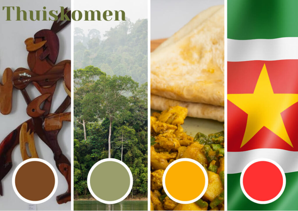 Ik vond het belangrijk dat de ouderen zich thuis voelen en een gevoel van herkenning ervaren. Voor het ontwerp heb ik me laten inspireren door de vlag van Suriname met zijn primaire kleuren en vooral betekenis. De gele ster voor verbondenheid van de vele bevolkingsgroepen, wit voor vrijheid, groen voor natuur en rood van de liefde en strijd.